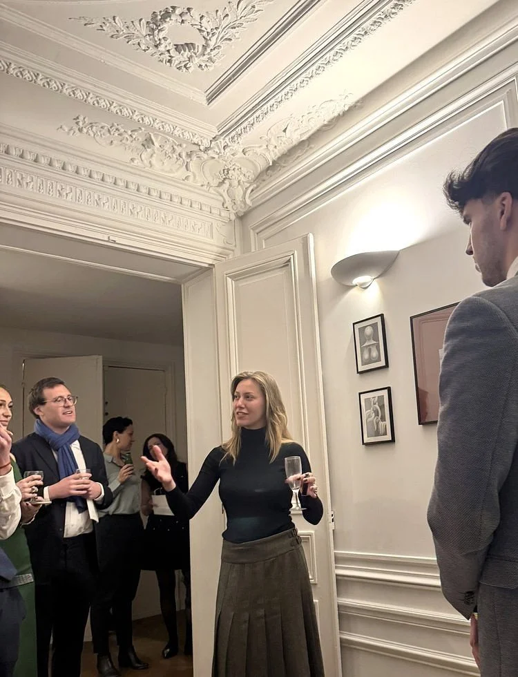 Attendees are young professionals and creatives in their twenties and early thirties, working across the worlds of art, culture, and fashion. The atmosphere is lively and inviting—complete with food, music, and lots of wine—resembling a dinner party as much as an art opening, encouraging mingling, networking, and new friendships. The evening also included a guided tour of the home and private collection of the exhibition’s host, an avid art collector who shared the stories behind her carefully curated space. With the artists in attendance, we were invited to engage directly—asking questions and discussing the inspiration behind works. That night, several works were acquired on the spot, a testament to The Salon’s mission of elevating emerging talent.